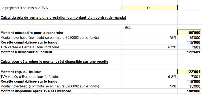- le montant disponible pour la recherche après déduction des overheads et de la TVA éventuelle.